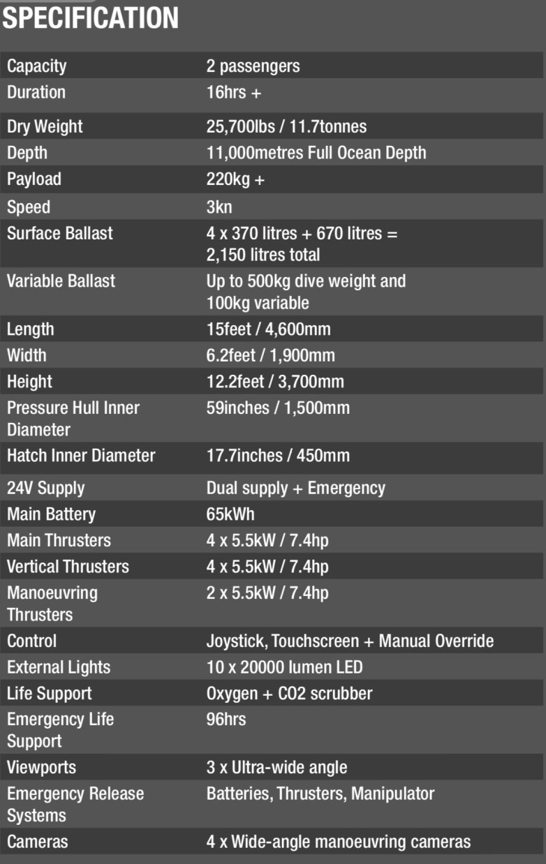 Özel bir şirket tarafından üretilen Triton Dünya’yı gezerek beş okyanusun en derin noktalarını araştırmayı hedefliyor. Triton biz bu yazıyi baskiya hazırlarken Atlantik, Güney ve Hint Okyanuslarının en derin noktalarına inmeyi başarmışti. Bu yılin sonunda da Pasifik ve Arktik Okyanusun derinliklerini ziyaret edecek. Bu görevi tamamladığında aracın tamamı özel bir yatırımcıya geçecek. Eğer 48.7 milyon dolarınız varsa, satın almayı deneyebilirsiniz!