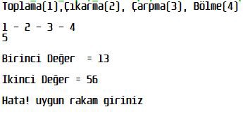 else: # Girilen diğer değerler için hata mesajı yazdırma