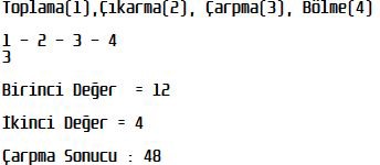 print("\nÇarpma Sonucu : {}".format(multiply_result))