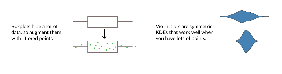 Violin Plot, kategorik eksen etrafında simetrik olmaları dışında, yazının başında öğrendiğimiz kernel density estimator gibidir. Teoride simetrik olamaları, karşılaştırmalar için yan yana daha verimli bir şekilde istiflenmelerini sağlar.